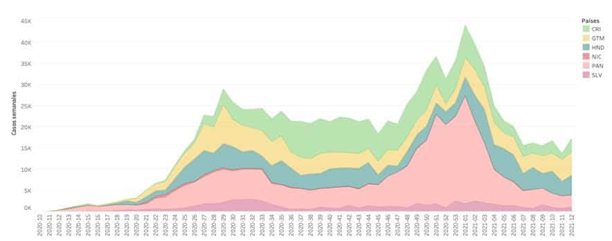 Evolución de los casos nuevos semanales de COVID-19 en América Central