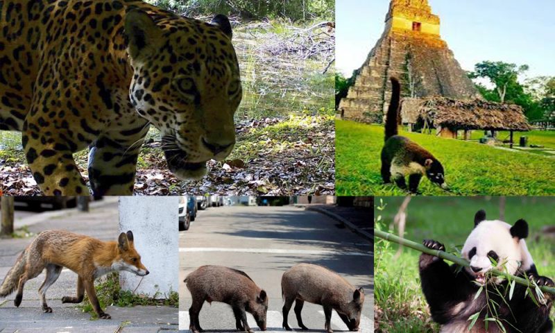 El nacimiento de pandas en zoológicos de China, Delfines en las costas de Cagliari. En Guatemala se ha informado de jaguares en el Parque Nacional Tikal y cámaras trampas que han registrado el aumento de venados y tapires.
