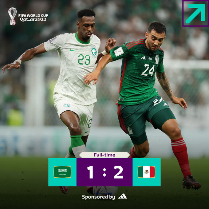 La combinación mexicana le ganó a Arabia Saudita 2 -1. Sin embargo, no clasificará a los Octavos de Final después de que lo hizo por siete mundiales de forma consecutiva.