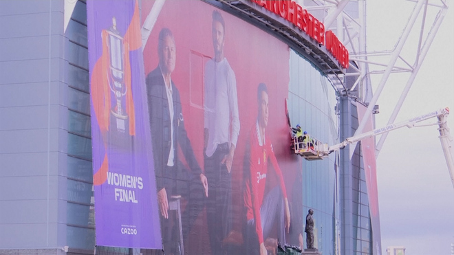 Una gigantesca imagen del futbolista colocada en el exterior del estadio del Manchester United fue retirada.