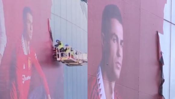 El Manchester parece enviar un contundente mensaje a la estrella del futbol, Cristiano Ronaldo al eliminar una lona gigante con la imagen de Cristiano en la fachada de Old Trafford.