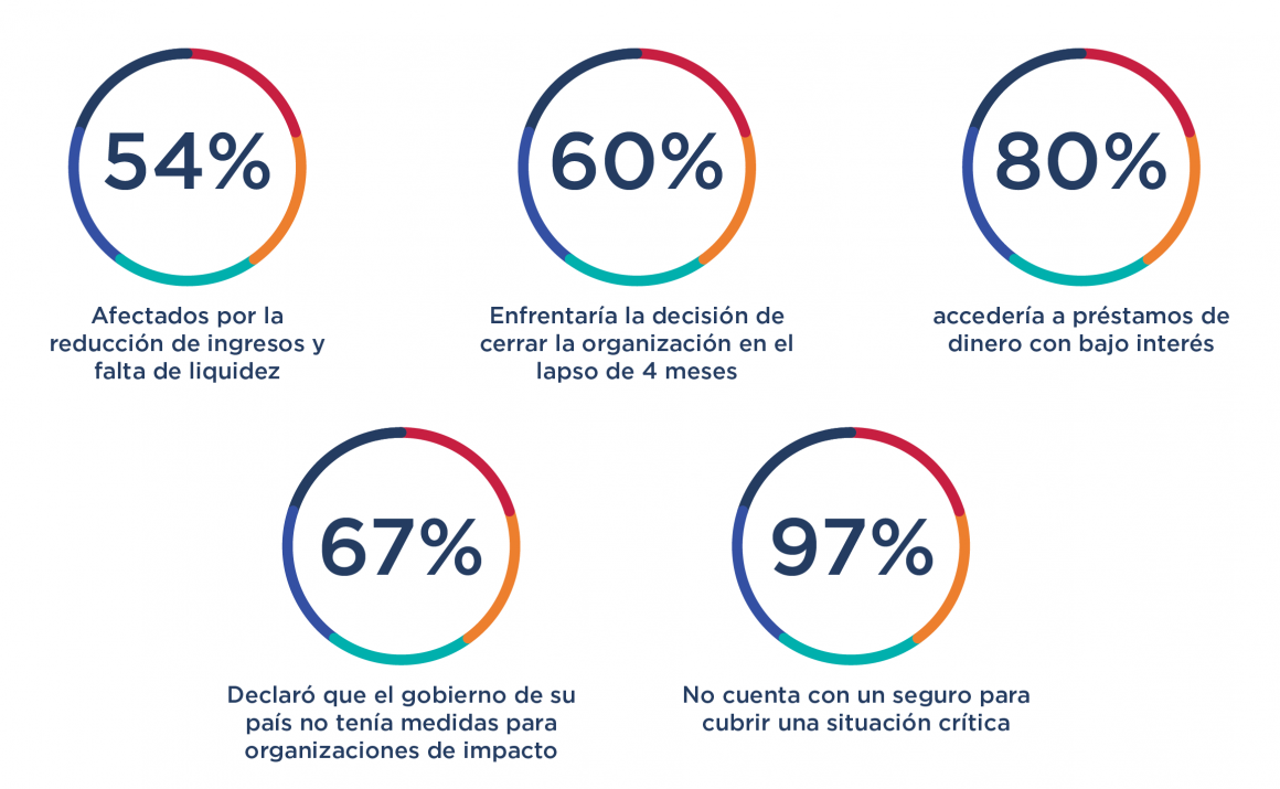 - El 67% declaró que el gobierno de su país no tenía medidas para organizaciones de impacto como las suyas.