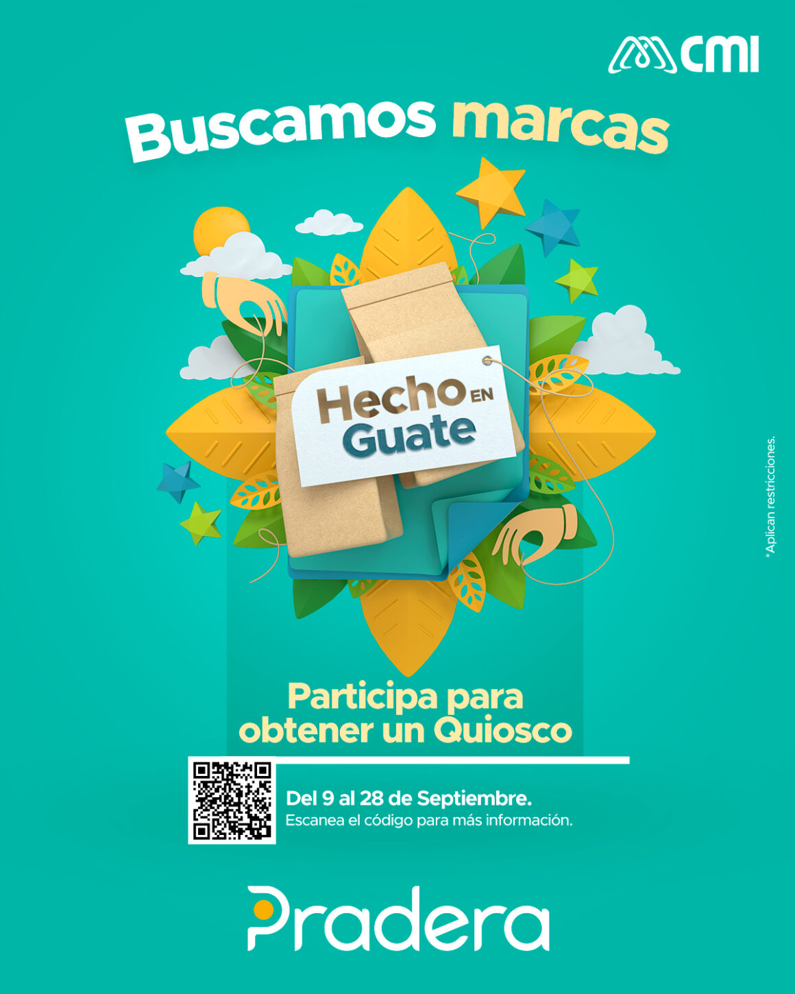 Hecho en Guate inicia el 9 de septiembre; pueden participar todos los emprendedores de la comunidad, ingresando al sitio web www.centroscomercialespradera.com/hechoenguate, o dirigirse al quiosco de información del centro comercial donde se apoyará a todos los emprendedores para completar el proceso de inscripción.