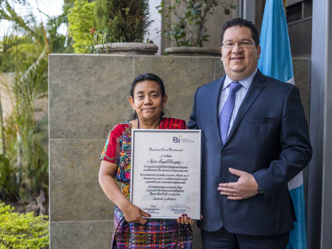En conmemoración del Día Nacional del Emprendimiento, Banco Industrial rindió homenaje a María Tuyuc Velásquez a través de su Programa Cívico Permanente.