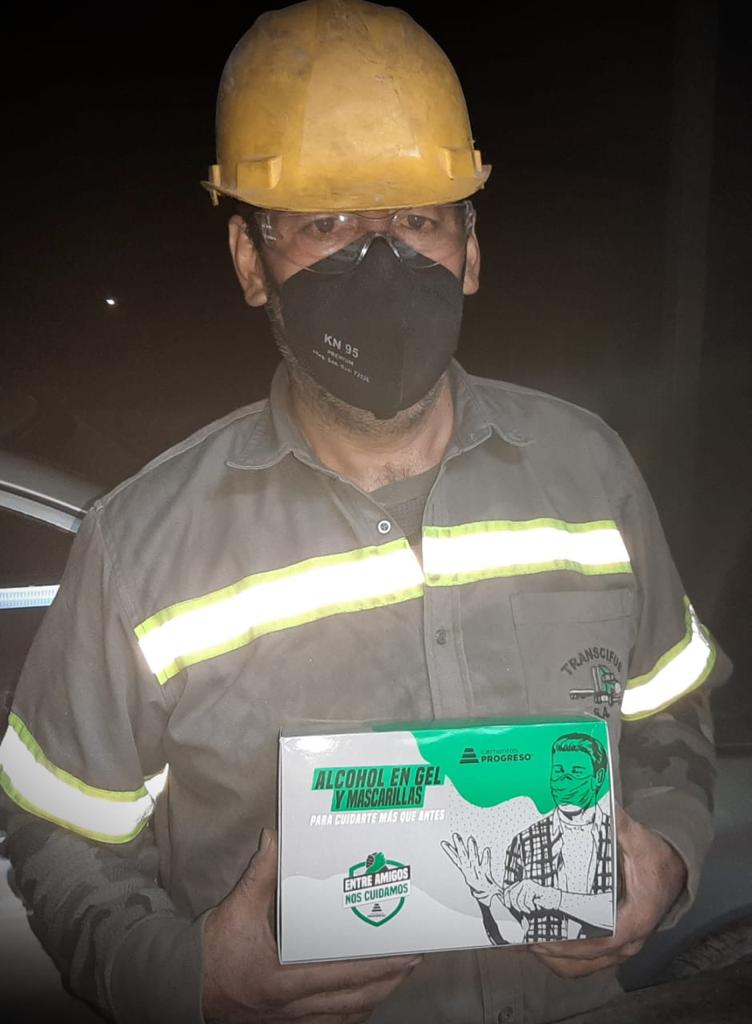 - Kits de higiene y cuidado para ferreteros, maestros de obra y albañiles: Con el objetivo de proteger la salud de los actores principales de la construcción (ferreteros, maestros de obra, albañiles y transportistas), el equipo de Cementos Progreso ejecutó un plan de acción que buscaba compartir buenas prácticas y entregó kits de higiene y cuidados para trabajar de forma segura.
