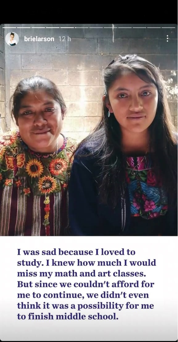 La actriz de Capitana Marvel, Brie Larson compartió en su cuenta de Instagram la historia de Rosa, una estudiante guatemalteca que lucha por salir adelante.