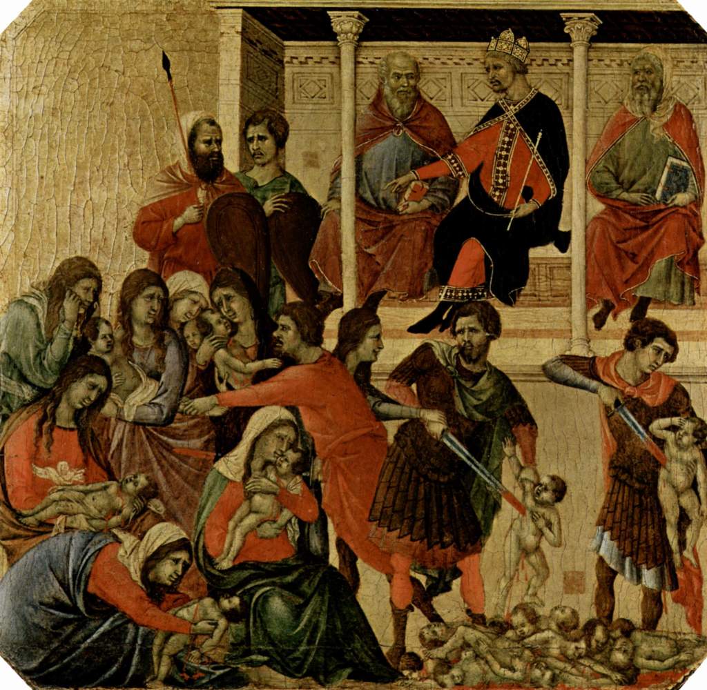 La matanza de los Inocentes, fue relatada por el evangelista Mateo. Según indica, que Herodes dio la orden de matar a los niños nacidos en Belén y a los menores de dos años ante el temor del nacimiento de Jesús.