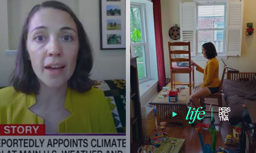 Las dos fotografías de Gretchen Goldman, científica estadounidense y directora del centro para la Ciencia y la Democracia de la USC , fueron tendencia en redes sociales, por poner en evidencia la realidad de muchas mujeres que en estos momentos han tenido que ingeniárselas para superar el reto de combinar la crianza de los hijos y el “home office” en tiempos de pandemia.