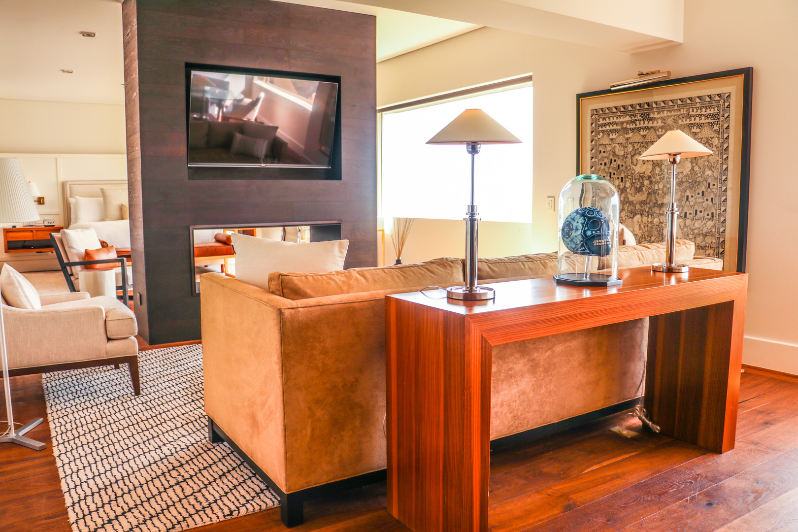 La joya de la corona, suntuosidad pura; así es la suite presidencial Diego Rivera. Ubicada en el piso 42 del resort, ésta es considerada la más bonita de Latinoamérica y la quinta a nivel mundial. Es un escenario que evoca los impresionantes murales que el artista mexicano plasmó durante su existencia.