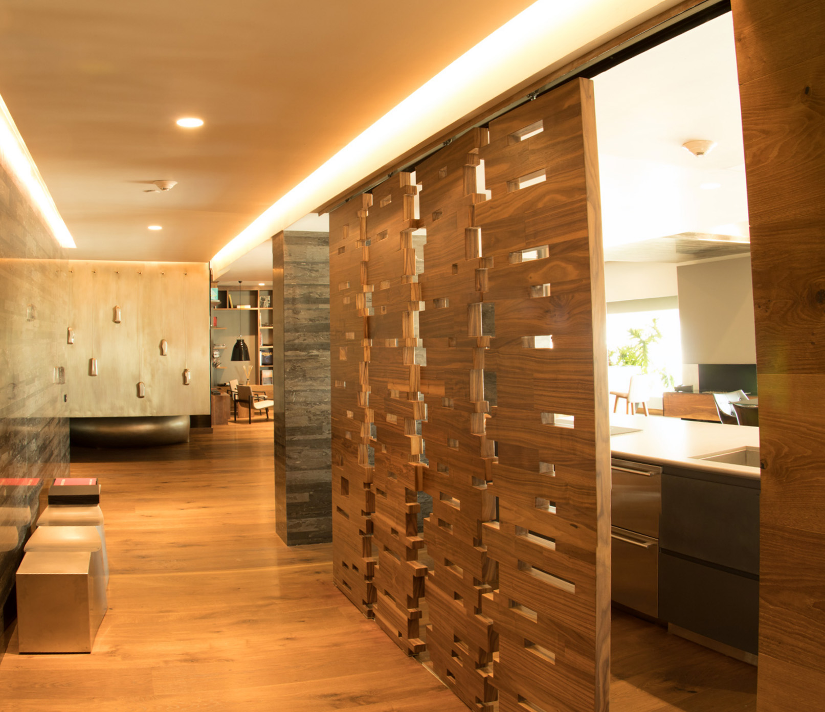 Este espacio es lo más parecido a un palacio. Gracias a sus ventanales de piso a techo, ofrece las mejores panorámicas del corazón de Polanco. Cuenta con sala, comedor, cava, oficina, un dormitorio, vapor, jacuzzi, terraza y chimenea, pero lo más espectacular se encuentra en el segundo piso de la suite: una alberca privada para sumergir las emociones, mientras disfrutas la instalación de videomapping llamada “Neuro” de Carlos García Noriega.