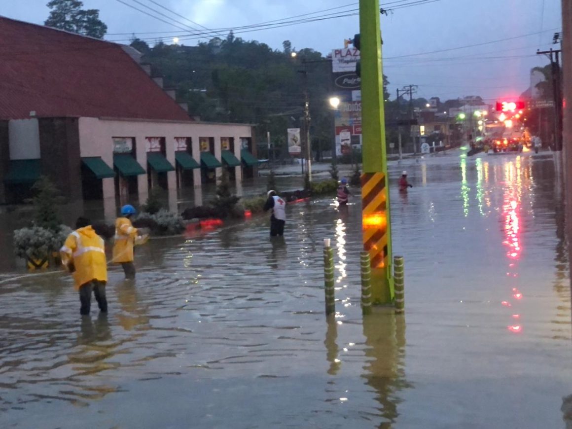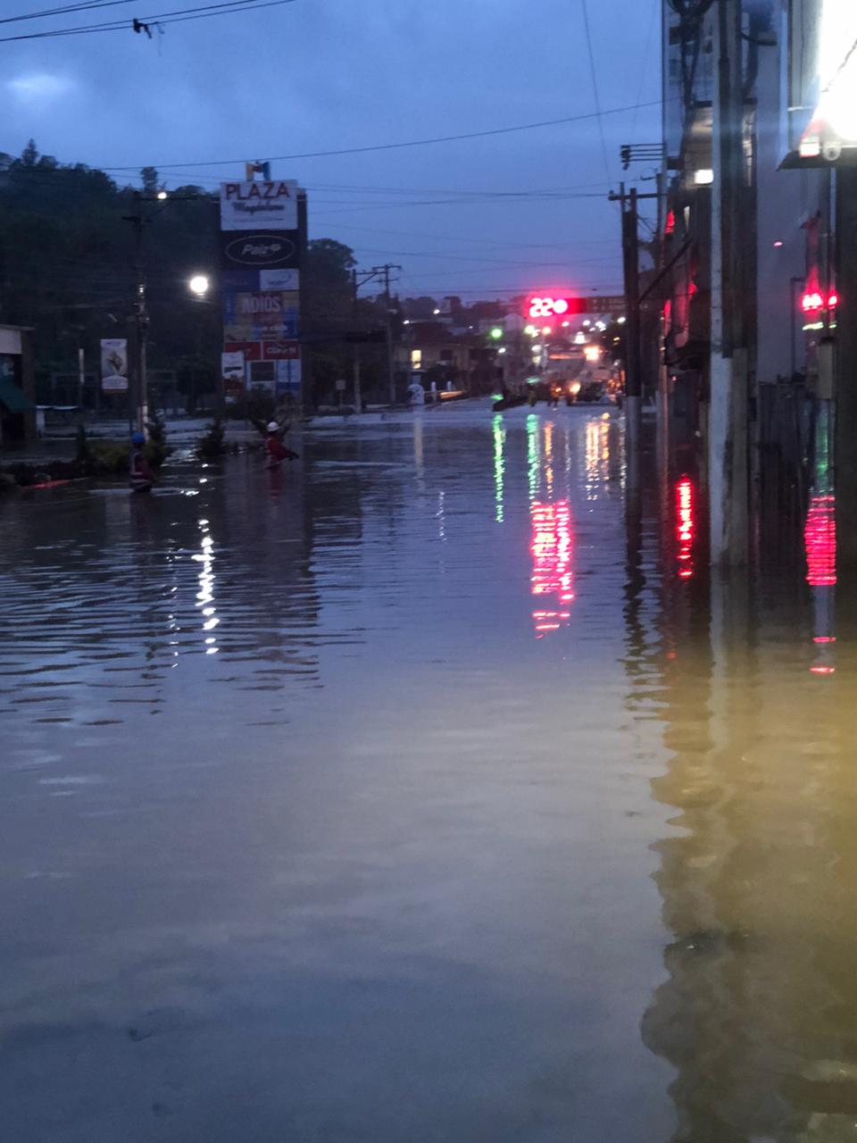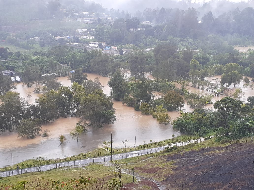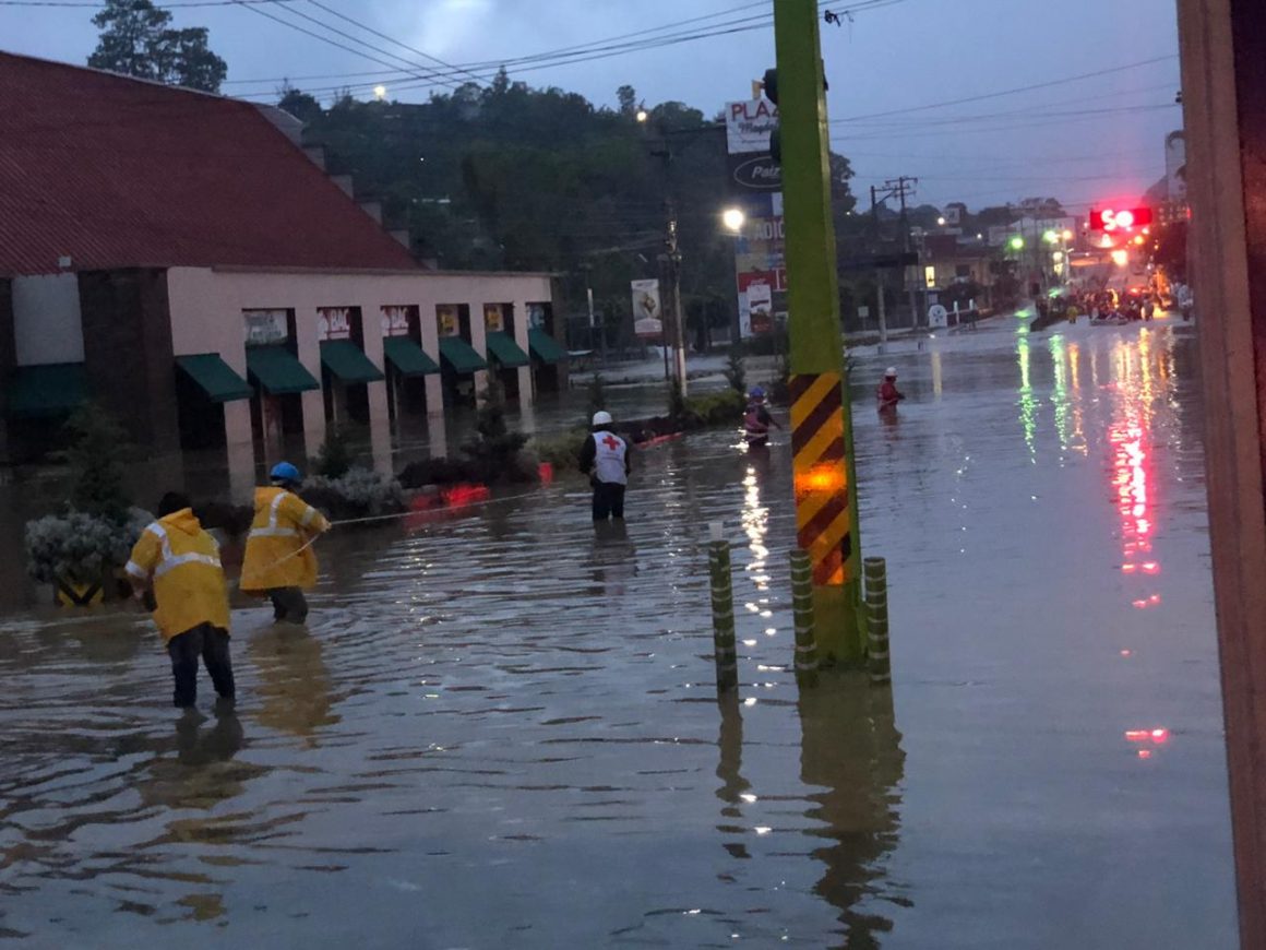 Las siguientes fotos muestran dos momentos del evento en Cobán: lo más álgido de la inundación, entre el 5 y 6 de noviembre, y el momento en que comenzó a bajar el agua, en la tarde y noche del 6.