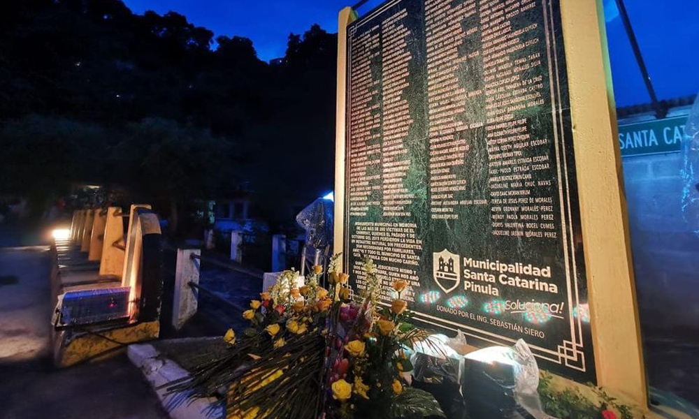 La Municipalidad de Santa Catarina Pinula realizó un homenaje a las víctimas del desastre natural ocurrido en El Cambray II colocando una placa con el nombre de las personas que perdieron la vida la noche del 1 de octubre de 2015.