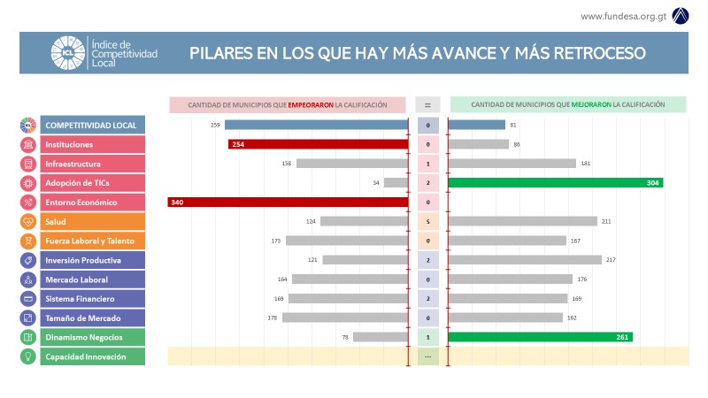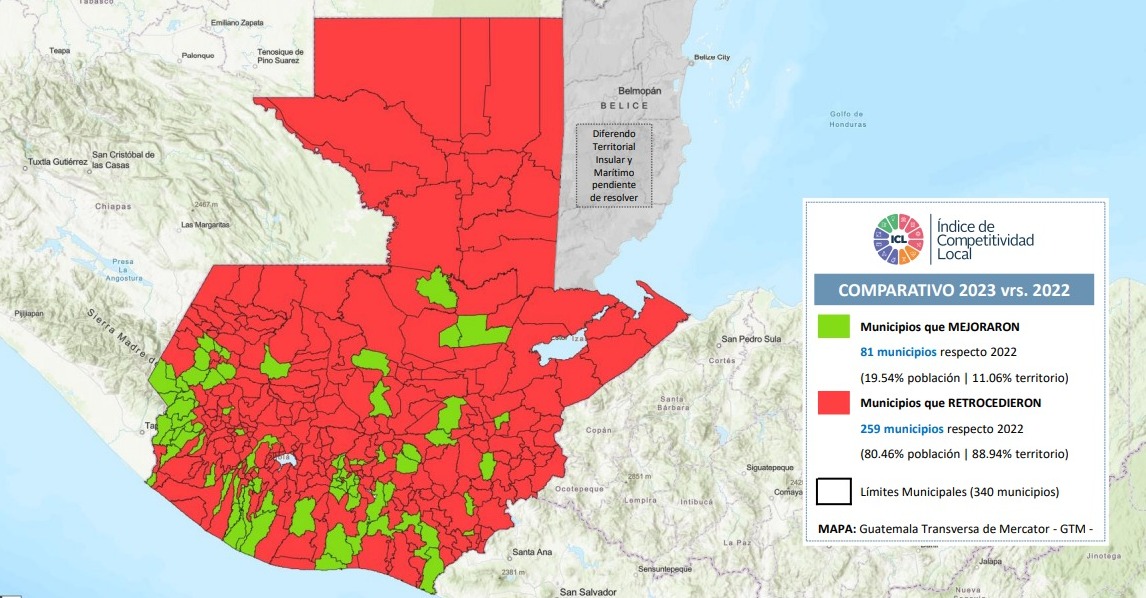 Como cada año, la Fundación para el Desarrollo de Guatemala (Fundesa), realizó este jueves la presentación del informe del Índice de Competitividad Local (ICL) de cada municipio de Guatemala, en donde destaca que en la versión 2023 solamente 81 municipios han mejorado y 259 municipios retrocedieron con relación al 2022.