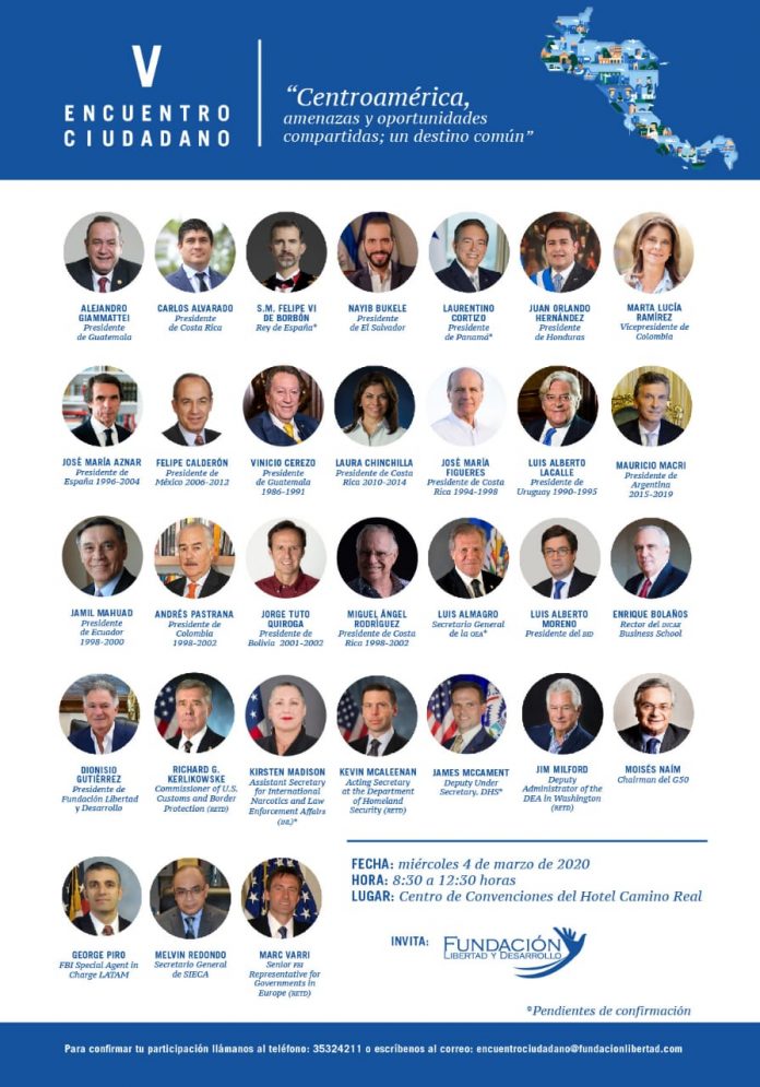 “Más de 30 líderes globales, entre presidentes de Iberoamérica, intelectuales, líderes cívicos y expertos en seguridad hemisférica discutirán sobre la integración económica de Centroamérica”, señaló un comunicado oficial de la Fundación Libertad y Desarrollo.