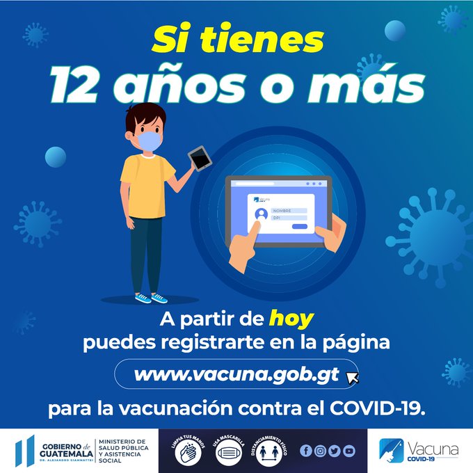 Las personas que deseen registrar a sus hijos entre 12 a 17 años pueden hacerlo en el portal www.vacuna.gob.gt.