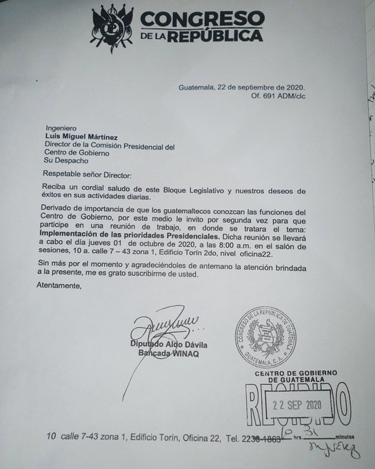 Al respecto, el diputado Dávila nuevamente convocó a Martínez para una reunión de trabajo en la que espera discutir las prioridades presidenciales y permitir que los guatemaltecos conozcan las funciones del Centro de Gobierno.