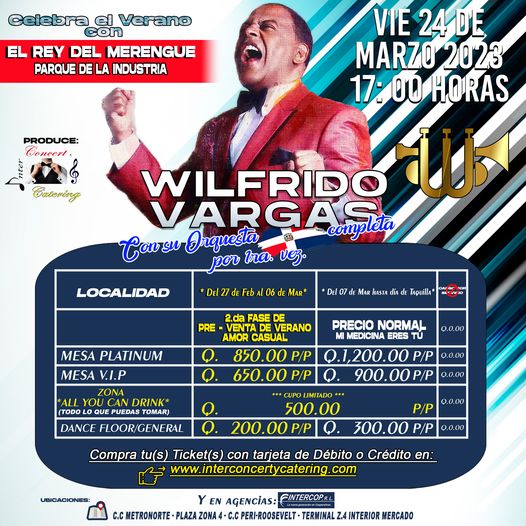 Hay buenas noticias para los fanáticos del merengue, el legendario Wilfrido Vargas, se presentará en Guatemala, en un concierto que promete una experiencia inolvidable. Conoce todos los detalles para adquirir tus entradas.
