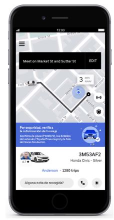 A partir de este 24 de julio, las personas que soliciten un viaje a través de Uber empezarán a recibir una notificación dentro de la app para recordarles que antes de subirse a un vehículo, verifiquen que los datos del automóvil y del socio conductor, coincidan con la información entregada por la aplicación.