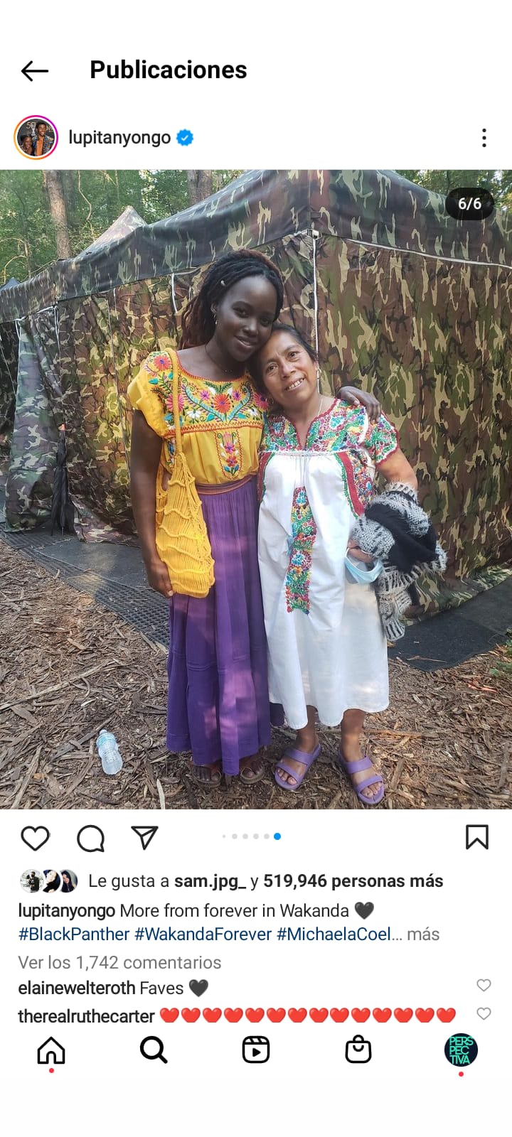 En una de sus publicaciones recientes de su cuenta de Instagram, Lupita Nyong’o subió una fotografía María Telón, con quien compartió una escena de la cinta de Marvel.