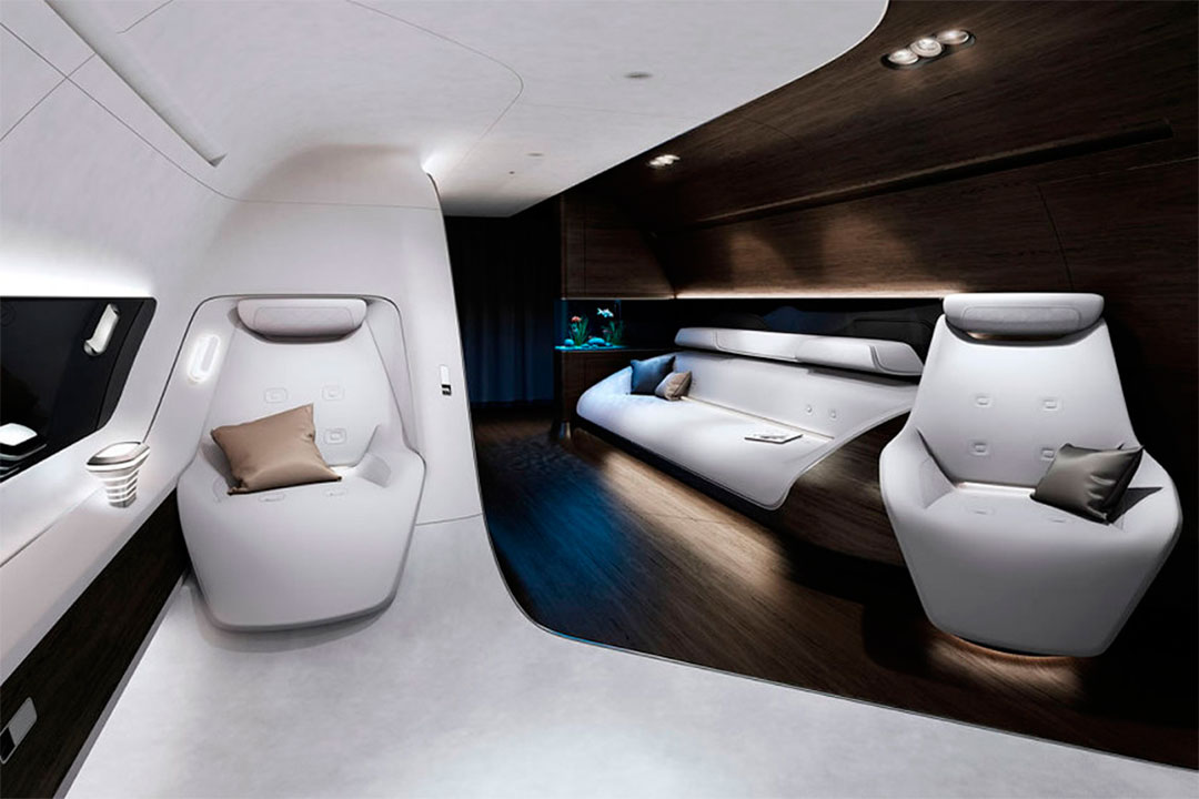 Se han aprovechado los espacios para convertir los viajes en una experiencia exclusiva para 16 personas. De tal modo, en la parte delantera se ubicará la cocina y una zona lounge; en la parte trasera se ha establecido la sala de entretenimiento y una suite privada con cuarto de baño acristalado.