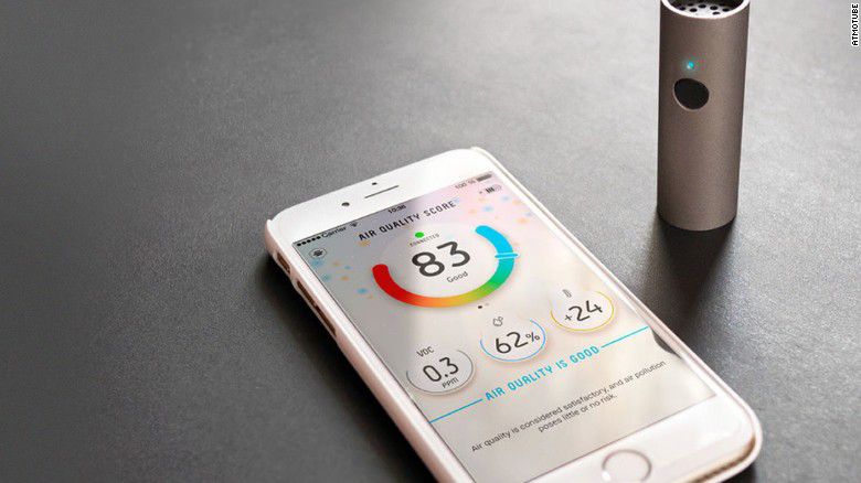 El Atmotube es un elegante dispositivo de bolsillo con una batería de sensores incrustados en su caparazón de titanio. El equipo de diseño afirma que puede detectar 127 compuestos orgánicos volátiles (COV), así como gases venenosos tales como el monóxido de carbono.