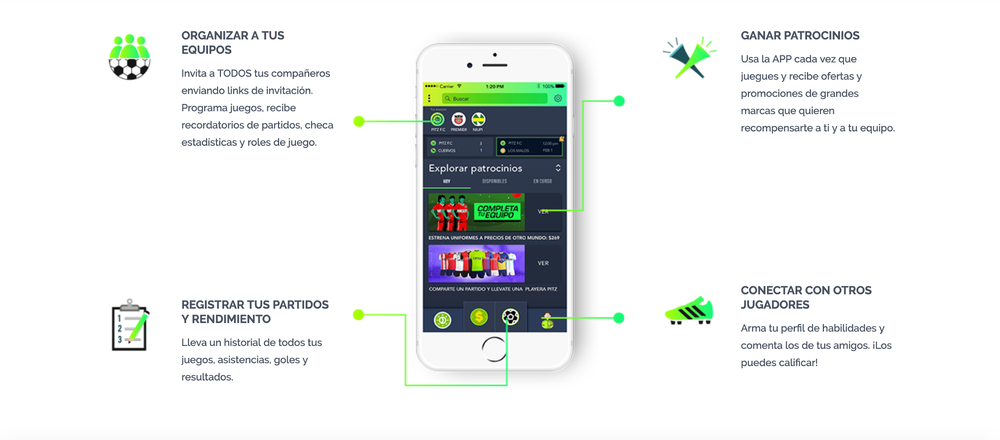 “Entre más usen PITZ antes y después de sus partidos, más oportunidades tienen de ganar patrocinios”, dice el emprendedor. Estos pueden ir desde financiar los uniformes de sus equipos hasta beneficios en especie a los jugadores, siempre y cuando se cumplan las condiciones que indiquen las marcas.